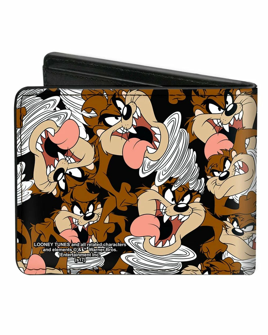 This awesome men’s bi-fold wallet is made from premium vegan leather. It measures 4.0×3.5×0.5 Inches, and features the standard billfold, 5 card slots, and windowed ID holder. The logos are applied using advanced printing technologies, so the wallet will still look good after years of hard use. This product is Made in the USA by Buckle-Down, Inc. and Officially Licensed by Looney Tunes.