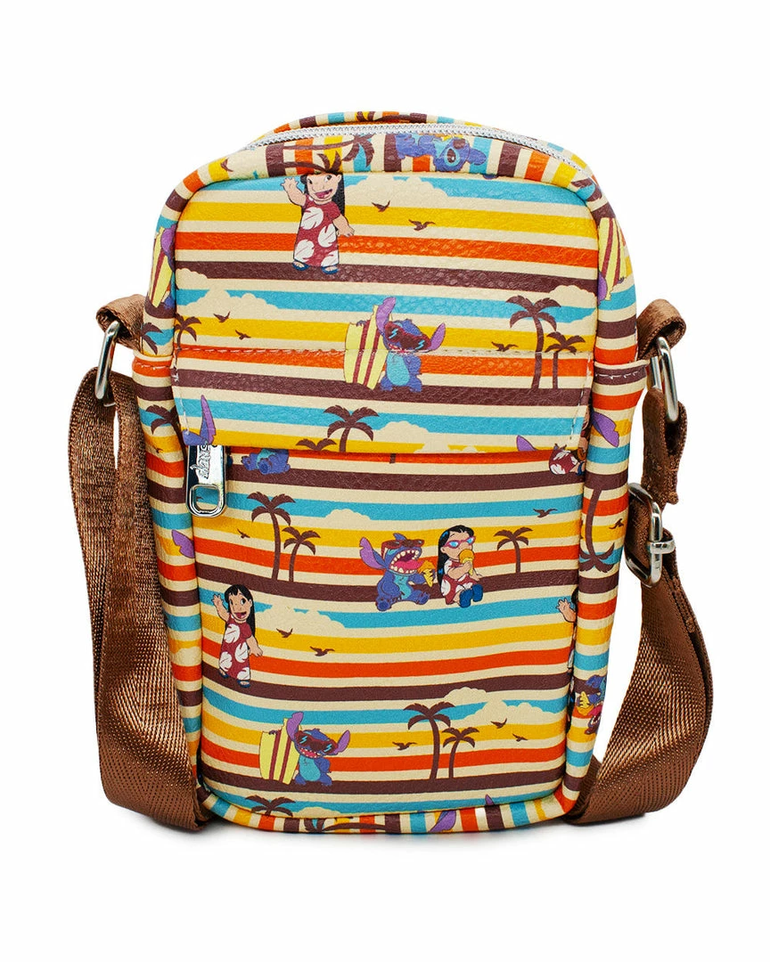 You’re going to love this Disney bag featuring Lilo & Stitch poses all over! Stylish and sleek cross body bag is made from premium vegan leather. It measures 8.0 x 5.5 x 2.0 Inches and features space to carry all your favorite things including phone, wallet, keys, etc. The gorgeous artwork is applied using the latest printing technology so it will hold up well over time. This product is made by Buckle-Down and is Officially Licensed by Disney.
