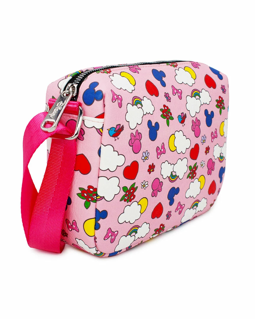 You’re going to love this Disney bag featuring a fun Mickey Mouse and Minnie Mouse icons print all over! Stylish and sleek cross body bag is made from premium vegan leather. It measures 8.5 x 6.5 x 2.75 Inches and features space to carry all your favorite things including phone, wallet, keys, etc. The gorgeous artwork is applied using the latest printing technology so it will hold up well over time. This product is made by Buckle-Down and is Officially Licensed by Disney.