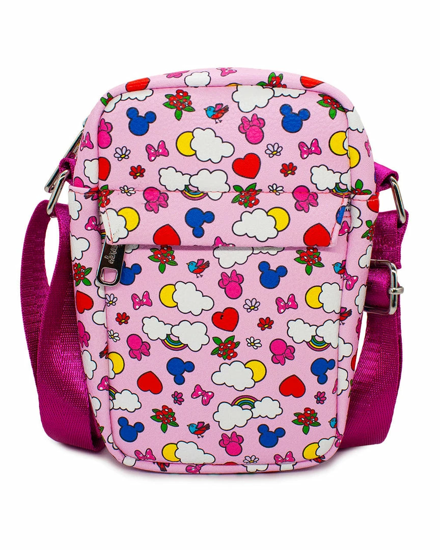 You’re going to love this Disney bag featuring a fun Mickey Mouse and Minnie Mouse icons print all over! Stylish and sleek cross body bag is made from premium vegan leather. It measures 8.0 x 5.5 x 2.0 Inches and features space to carry all your favorite things including phone, wallet, keys, etc. The gorgeous artwork is applied using the latest printing technology so it will hold up well over time. This product is made by Buckle-Down and is Officially Licensed by Disney.