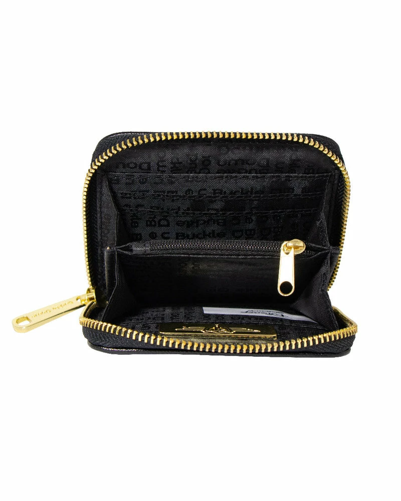 You’re going to love this Disney wallet featuring the Signature Disney D Logo in gold with faux pearls! Stylish and sleek this zip around wallet is made from premium vegan leather. It measures 4.5 x 4.0 x 1.0 Inches and features 2 billfolds, 4 card slots, and 1 coin zipper. The logo is applied using an amazing casted gold emblem with faux pearls. This product is made by Buckle-Down and is Officially Licensed by Disney.