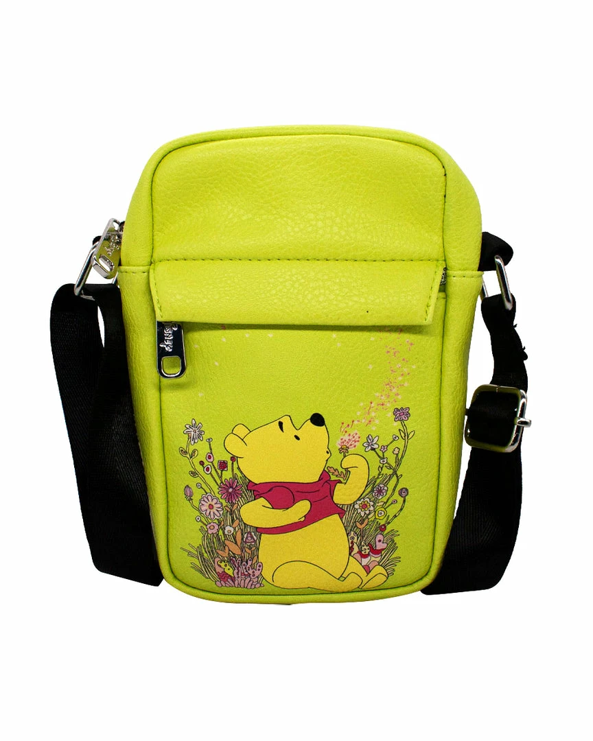 You’re going to love this Disney bag featuring Winnie the Pooh sitting among flowers holding a dandelion! Stylish and sleek cross body bag is made from premium vegan leather. It measures 8.0 x 5.5 x 2.0 Inches and features space to carry all your favorite things including phone, wallet, keys, etc. The gorgeous artwork is applied using the latest printing technology so it will hold up well over time. This product is made by Buckle-Down and is Officially Licensed by Disney.