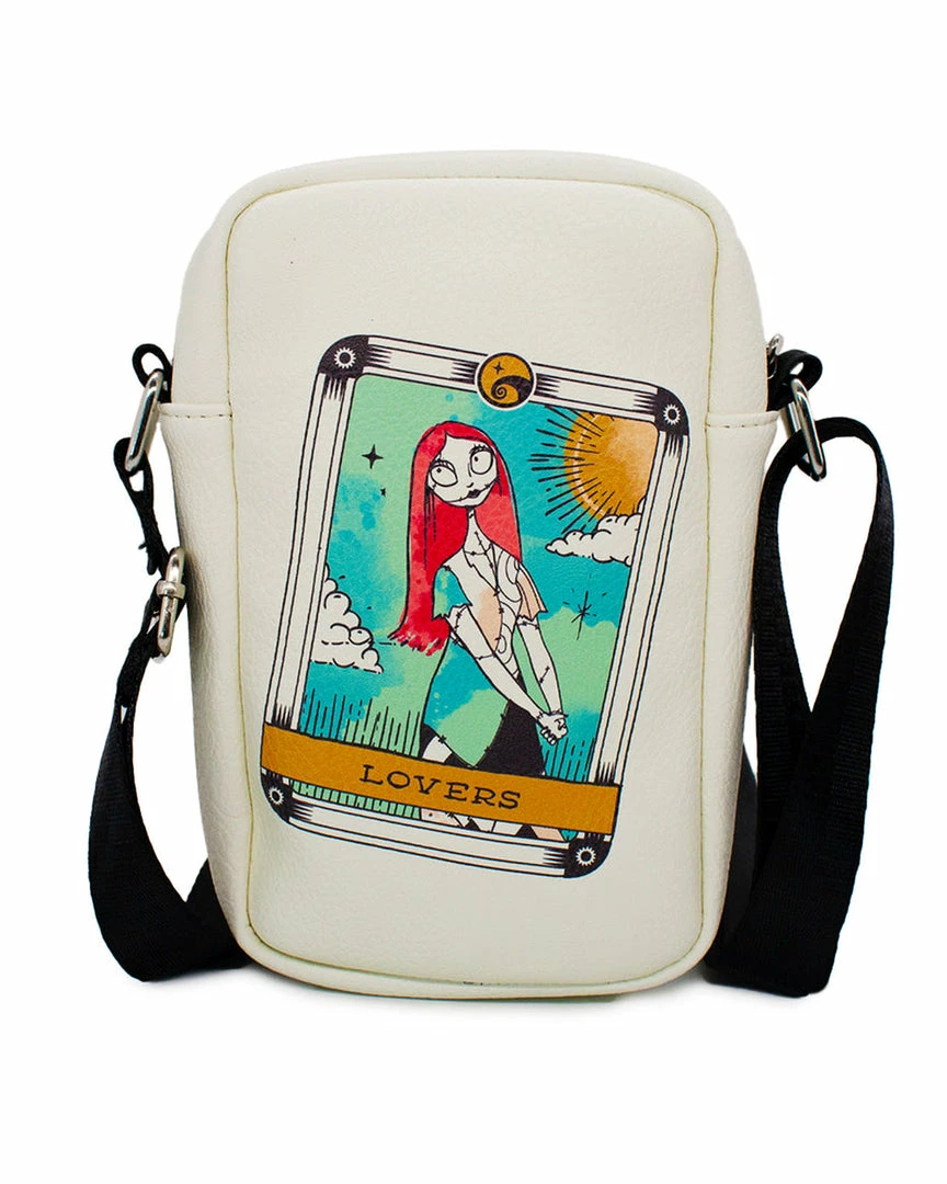 You’re going to love this Disney Nightmare Before Christmas bag featuring Jack and Sally star-crossed lover tarot card poses! Stylish and sleek cross body bag is made from premium vegan leather. It measures 8.0 x 5.5 x 2.0 Inches and features space to carry all your favorite things including phone, wallet, keys, etc. The gorgeous artwork is applied using the latest printing technology so it will hold up well over time. This product is made by Buckle-Down and is Officially Licensed by Disney.