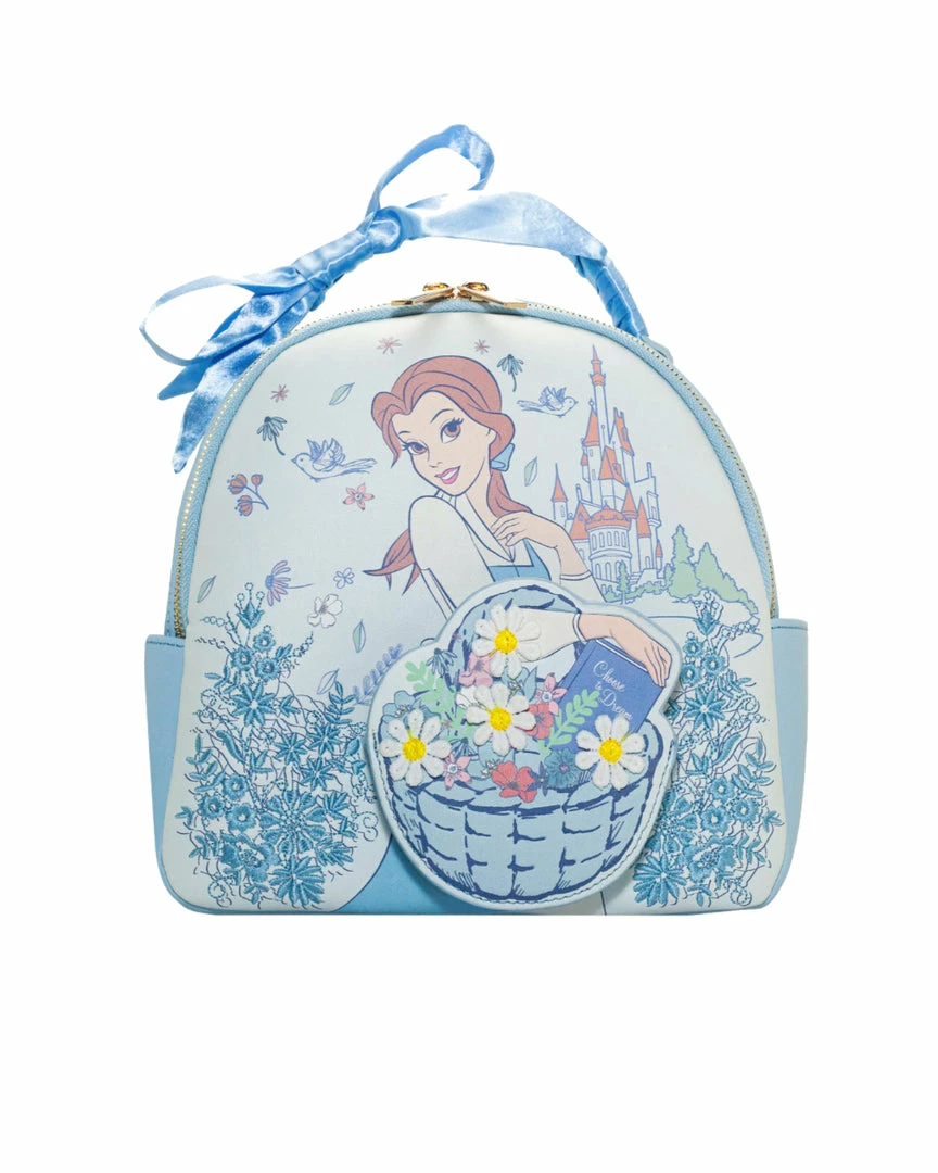 Bonjour! Explore with the most enchanting backpack, inspired by Belle’s Parisian village from Beauty and the Beast. The front die cut pocket features a woven basket, and the base of the bag has light blue floral embroidery and a print of your favorite princess. A bow ribbon decorates the top corner of the bag, and the backpack has adjustable straps for easy wear. An interior pocket will keep all your necessities organized for your next adventure.