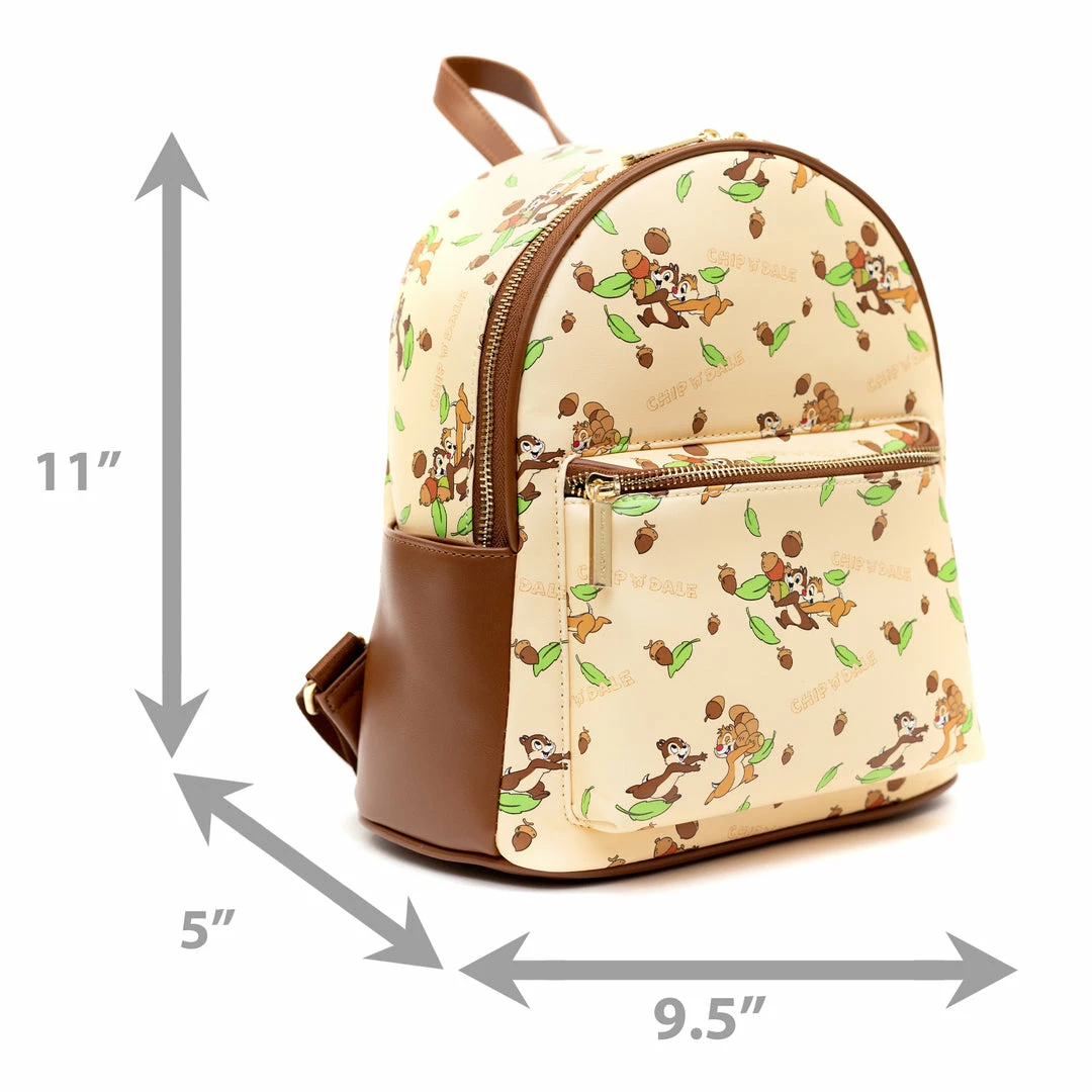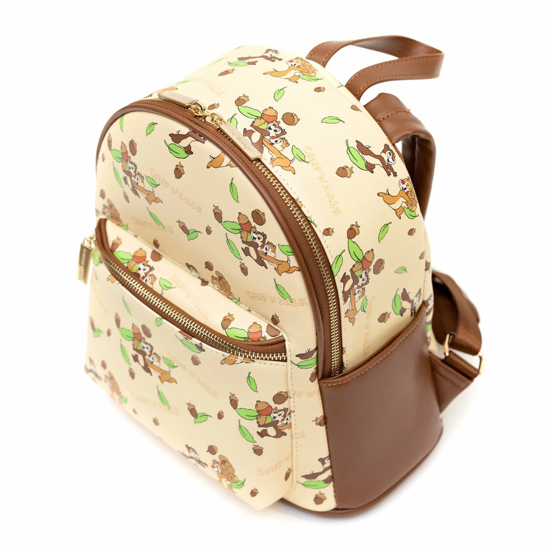 - You’re going to love this cute backpack featuring Disney Chip and Dale This mini backpack features include sturdy gold toned metal hardware, adjustable straps, side pockets, and is made of vegan leather (polyurethane)