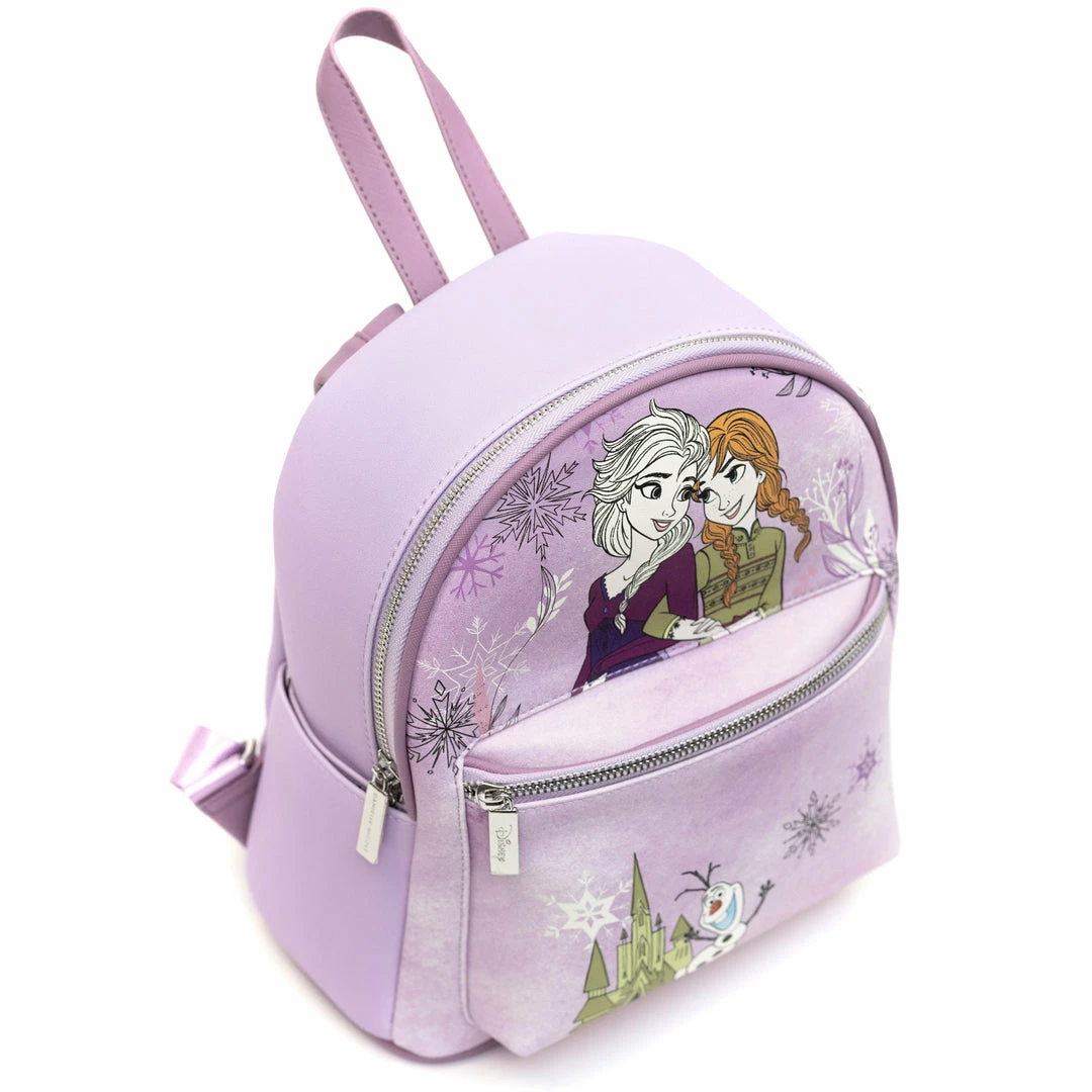 - You’re going to love this cute backpack featuring Disney Frozen. This mini backpack features include sturdy silver toned metal hardware, adjustable straps, side pockets, and is made of vegan leather (polyurethane)