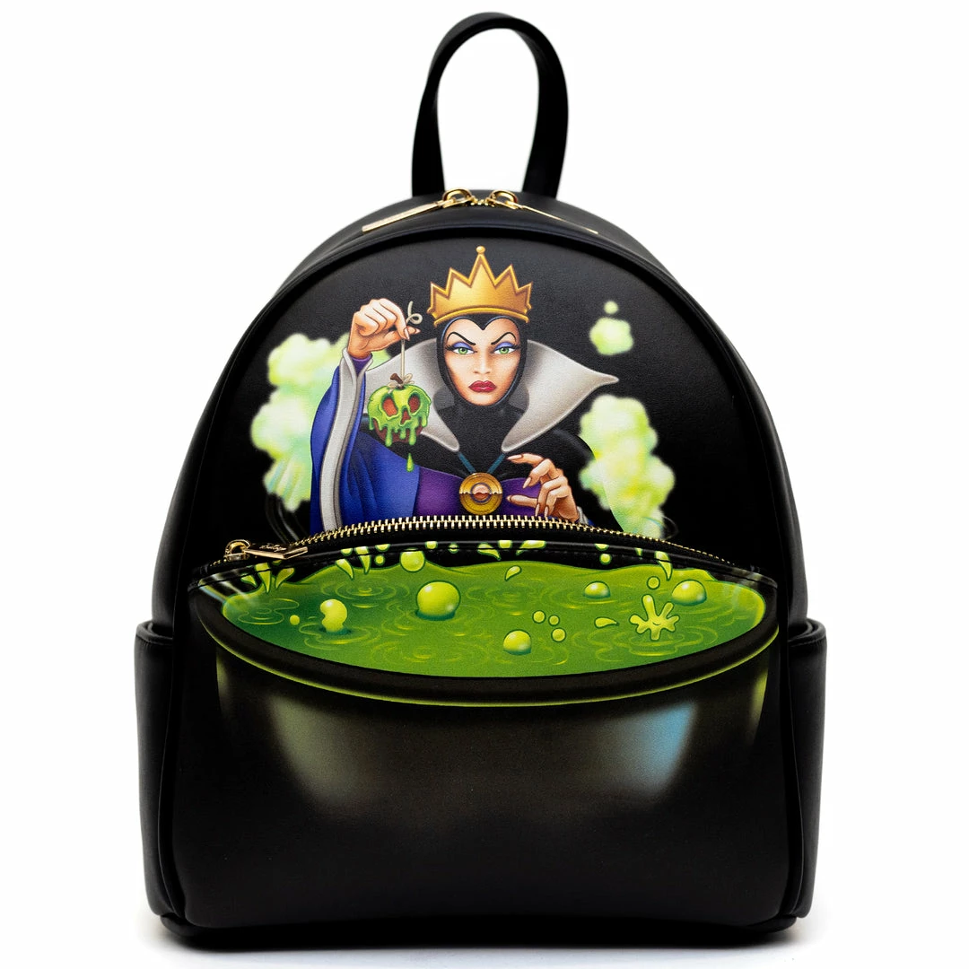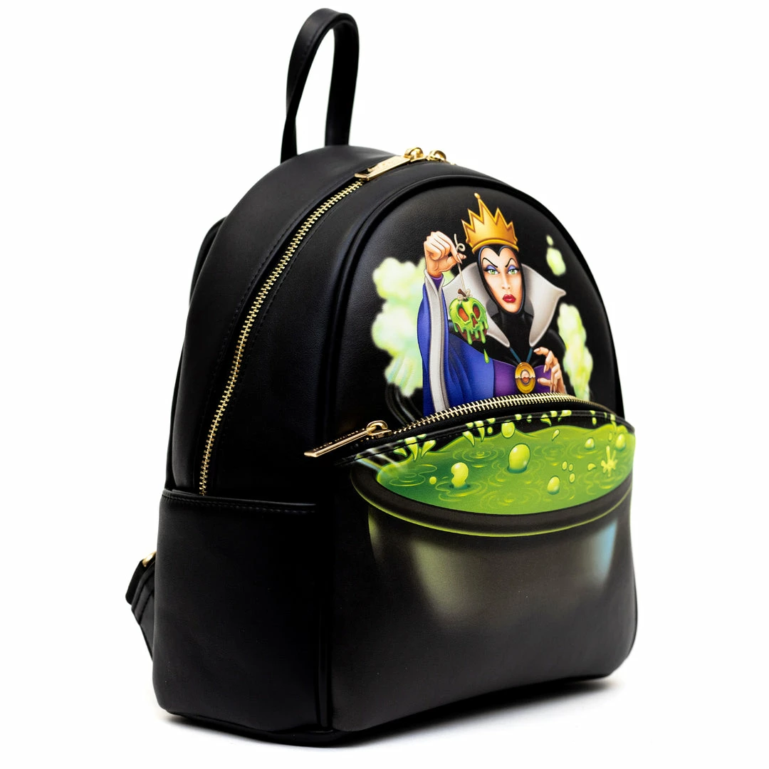 - You’re going to love this cute backpack featuring Disney Evil Queen. This mini backpack features include sturdy gold toned metal hardware, adjustable straps, side pockets, and is made of vegan leather (polyurethane)