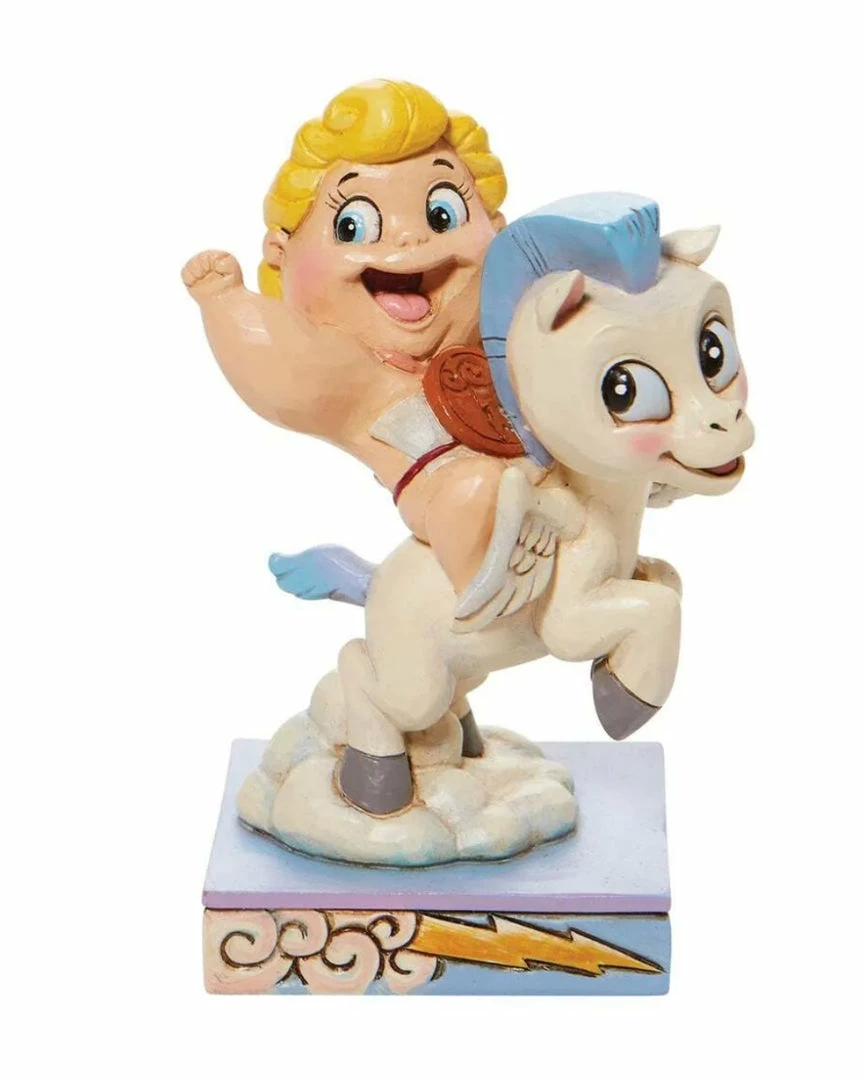 Celebrating the 25th anniversary of Walt Disney’s Hercules, Jim Shore presents this winsome figurine of baby Herc and Pegasus flying above the clouds. Wearing the sigil of the gods, Hercules pumps his fist in tiny triumph as the pair smile sweetly.