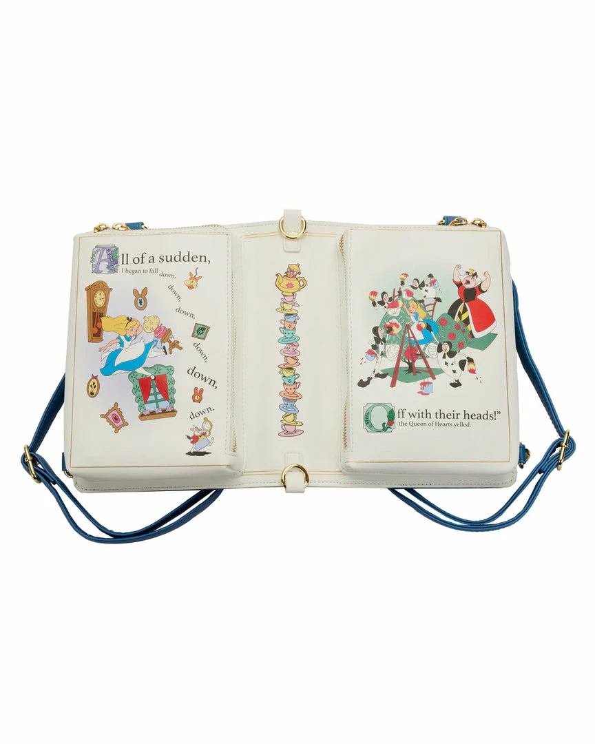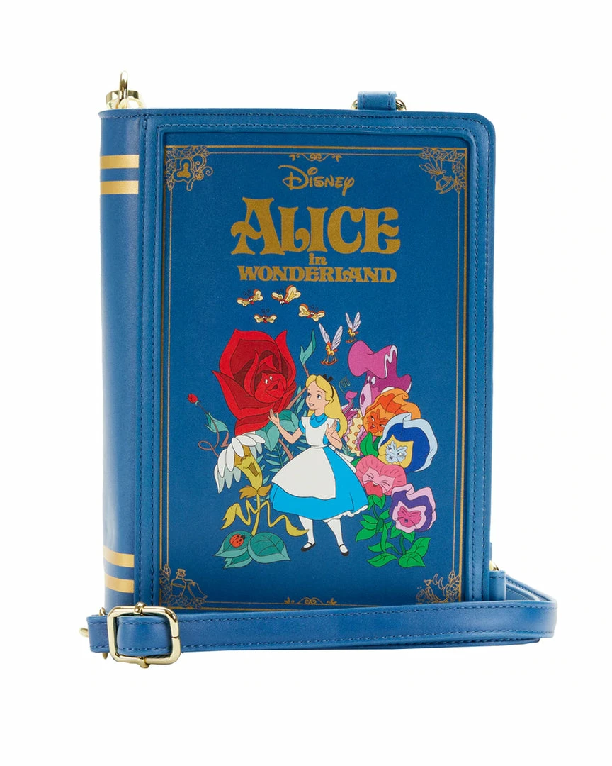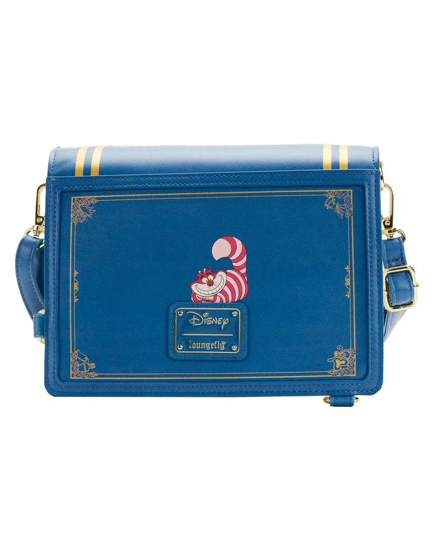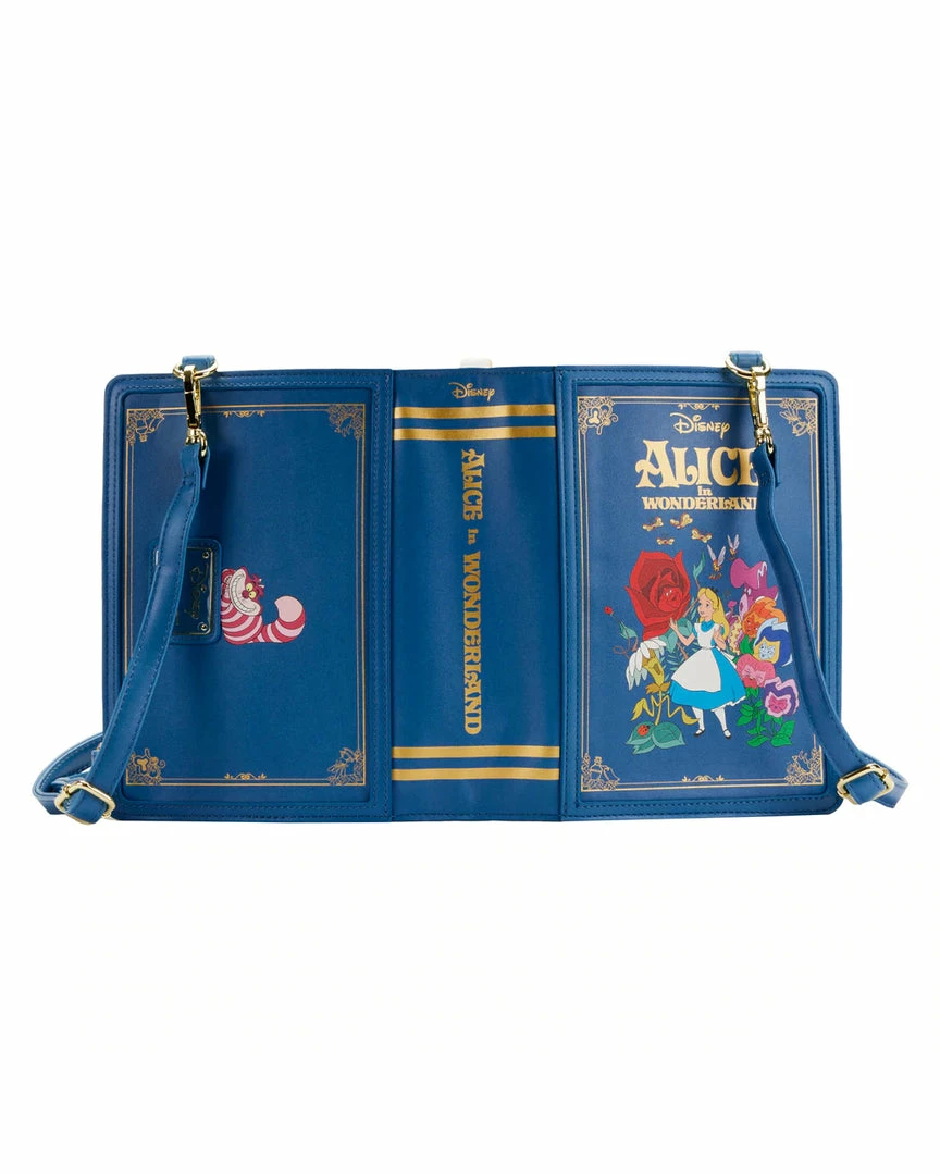 Take a wondrous trip with Alice and capture her adventures with this Alice in Wonderland Book Convertible Crossbody Bag. This convertible bag is shaped like a book and opens up to the pages of Alice’s journeys—from the lessons she learns from the flowers–to her encounter with the Red Queen. Adjustable, removable straps help convert the handbag into a backpack. On the back, the grinning Cheshire Cat makes an appearance. This accessory complements any Disney outfit and is perfect for fans who are looking to keep their favorite animated moments close.