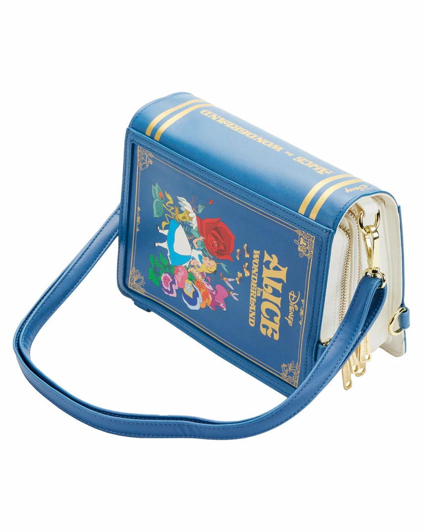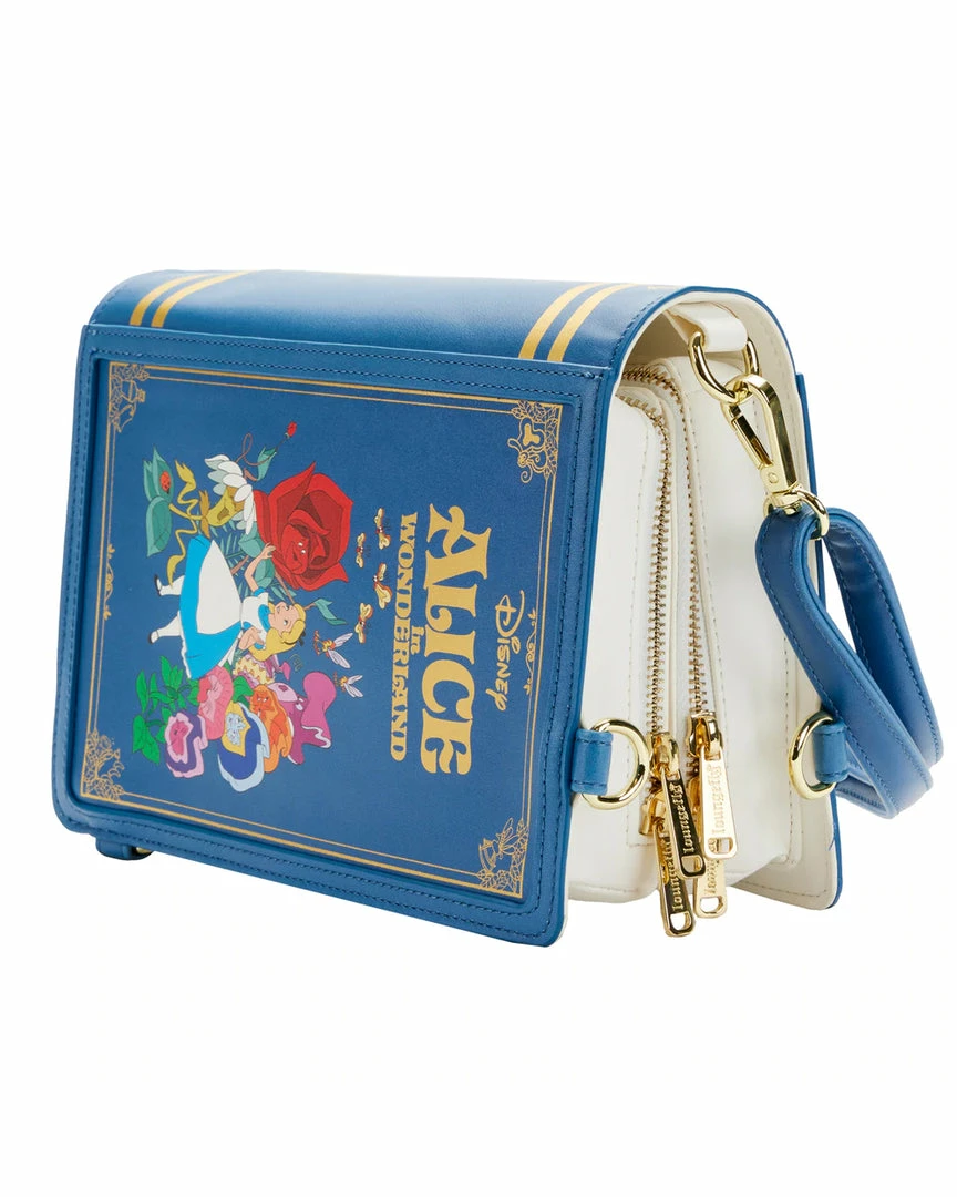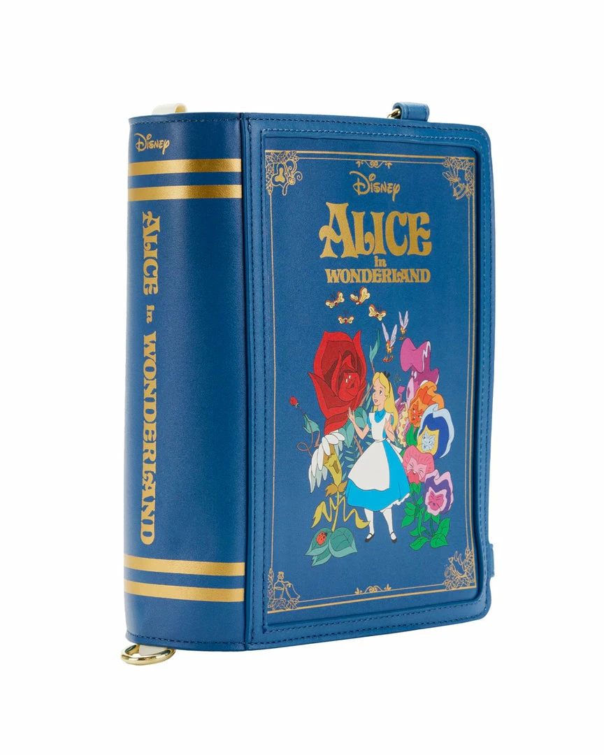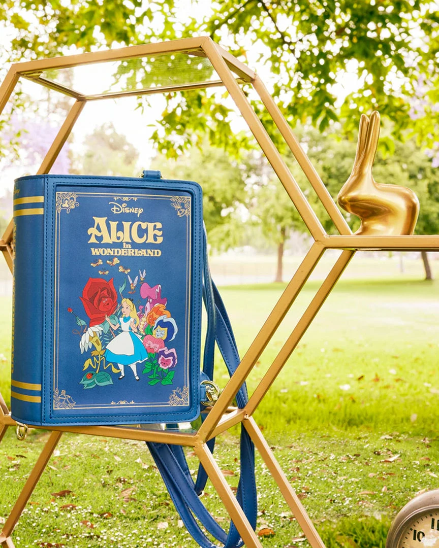 Take a wondrous trip with Alice and capture her adventures with this Alice in Wonderland Book Convertible Crossbody Bag. This convertible bag is shaped like a book and opens up to the pages of Alice’s journeys—from the lessons she learns from the flowers–to her encounter with the Red Queen. Adjustable, removable straps help convert the handbag into a backpack. On the back, the grinning Cheshire Cat makes an appearance. This accessory complements any Disney outfit and is perfect for fans who are looking to keep their favorite animated moments close.