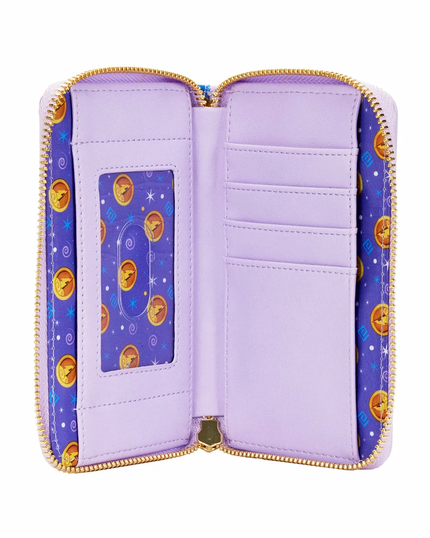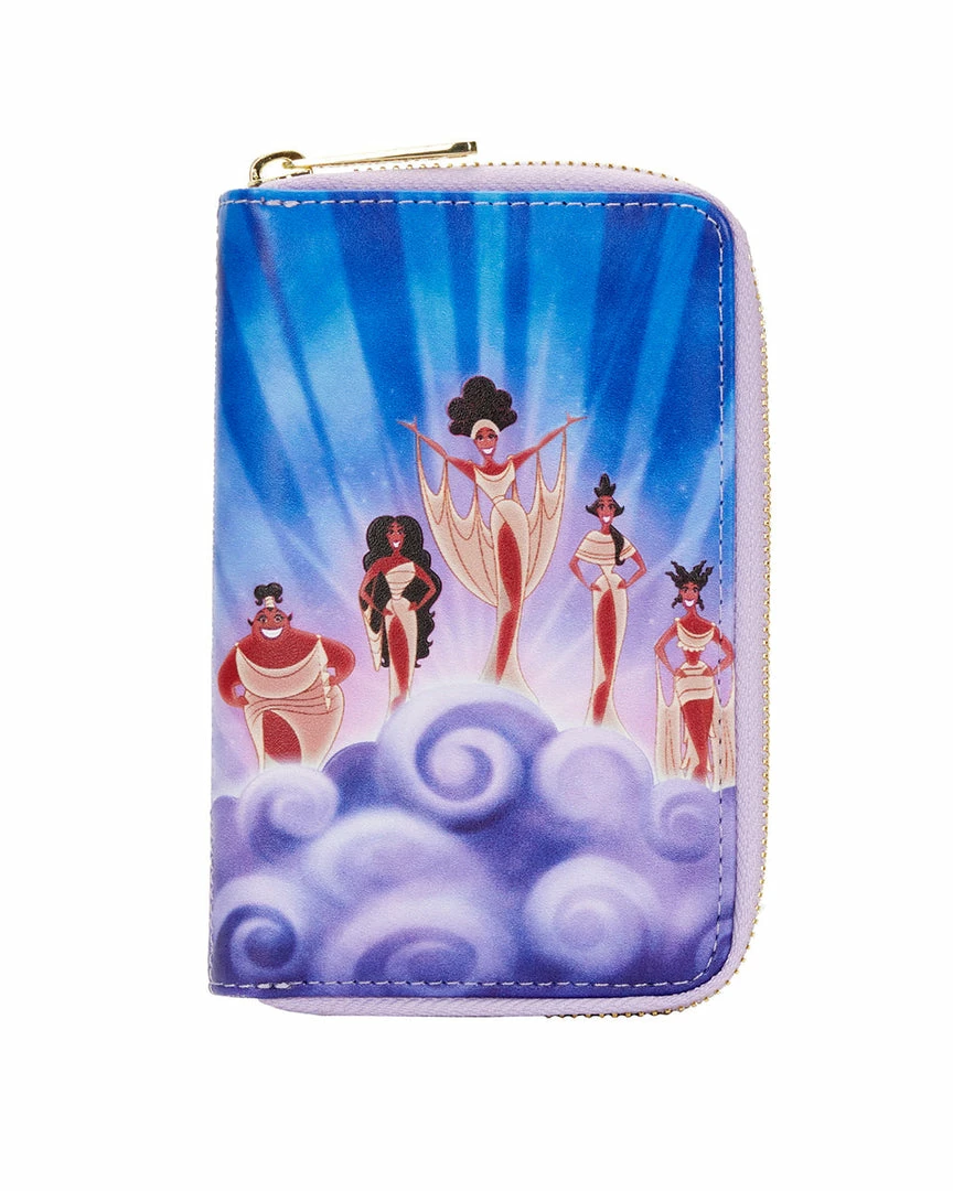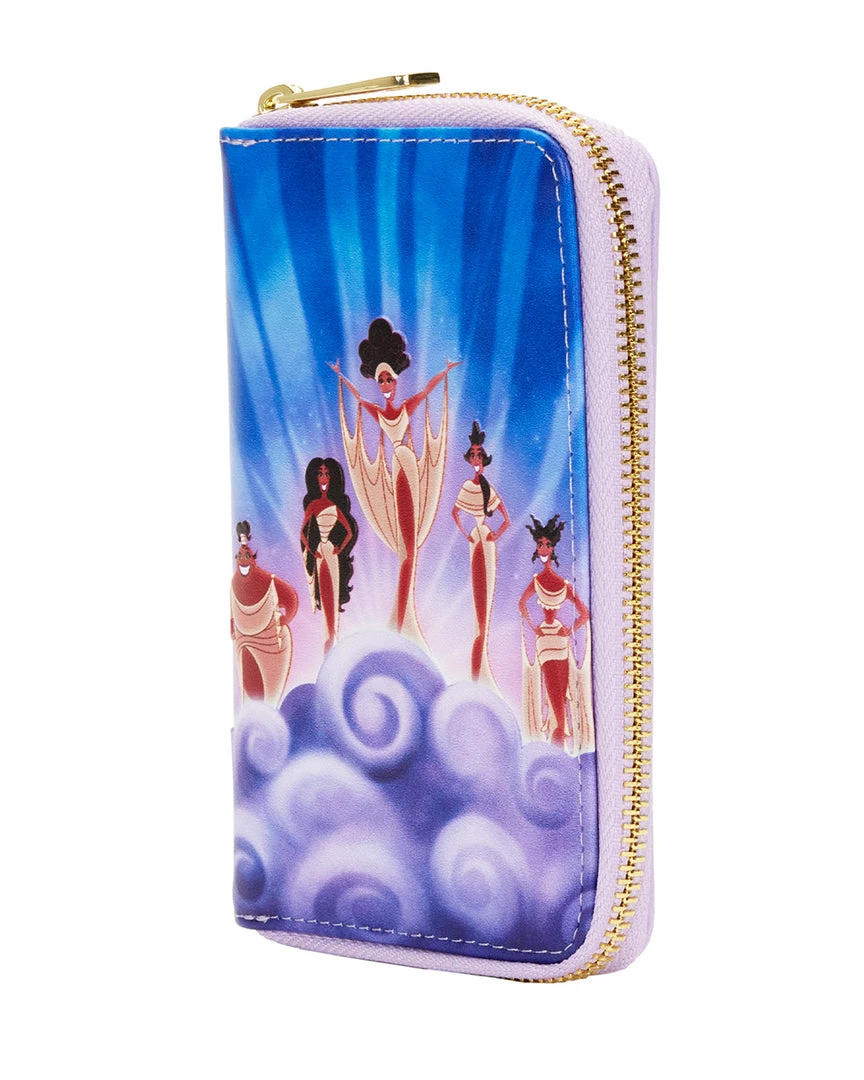 Call on the muses to add sparkle to your day with this Hercules Muses Clouds Zip Around Wallet. The muses from Hercules gather in a glittering display upon the clouds, against a soft violet background, the golden rays of the sun shining through. Take these muses with you to inspire all of your journeys.