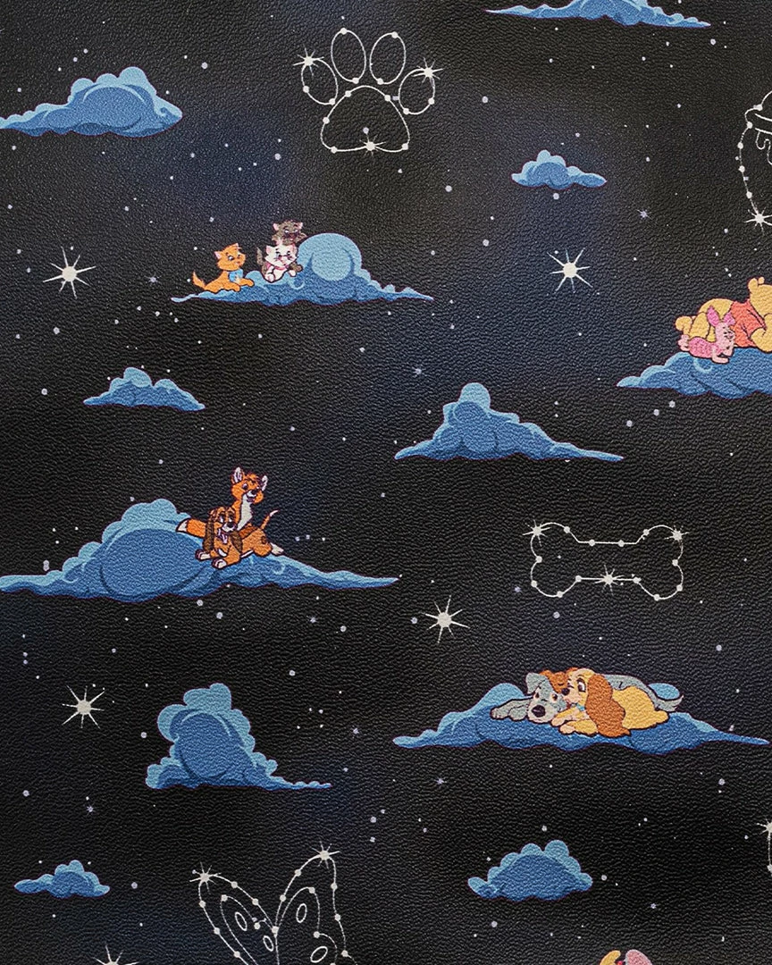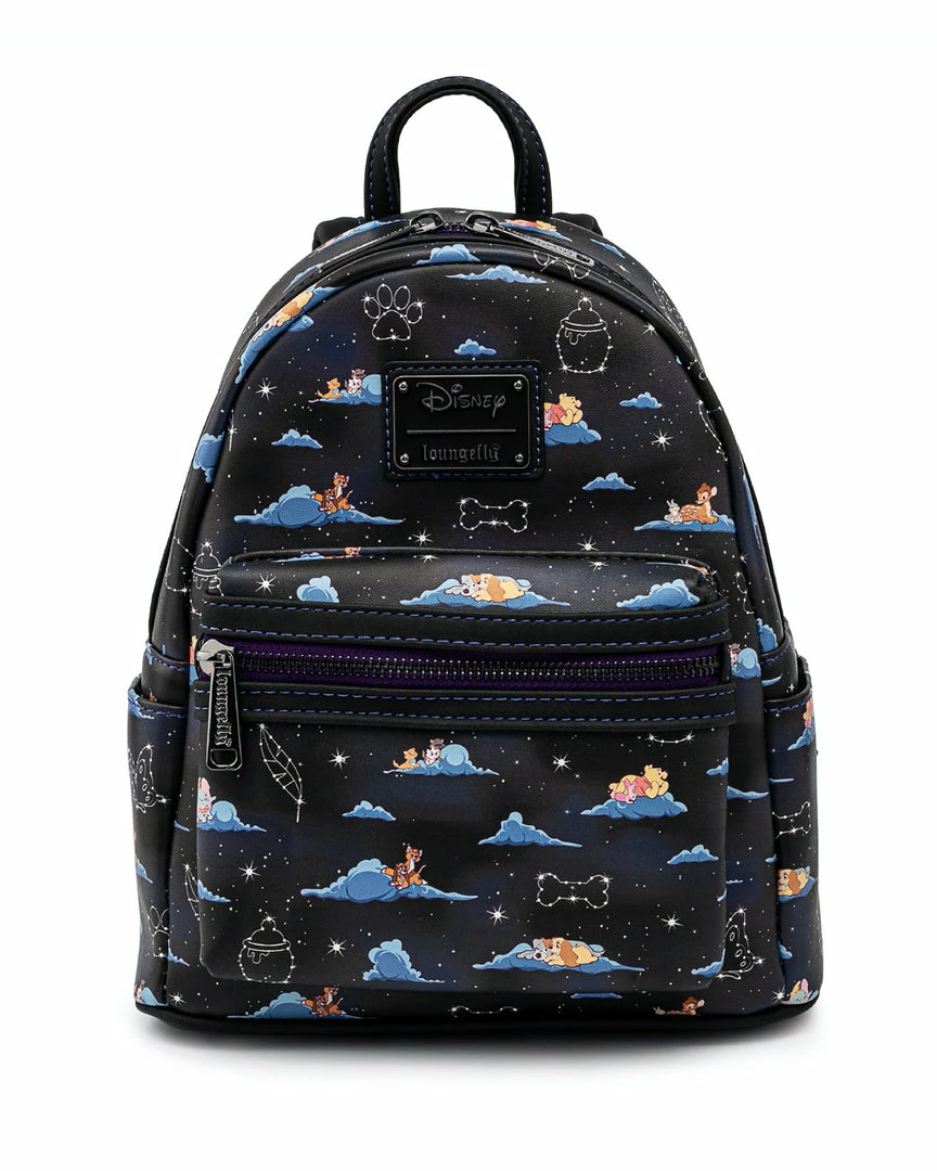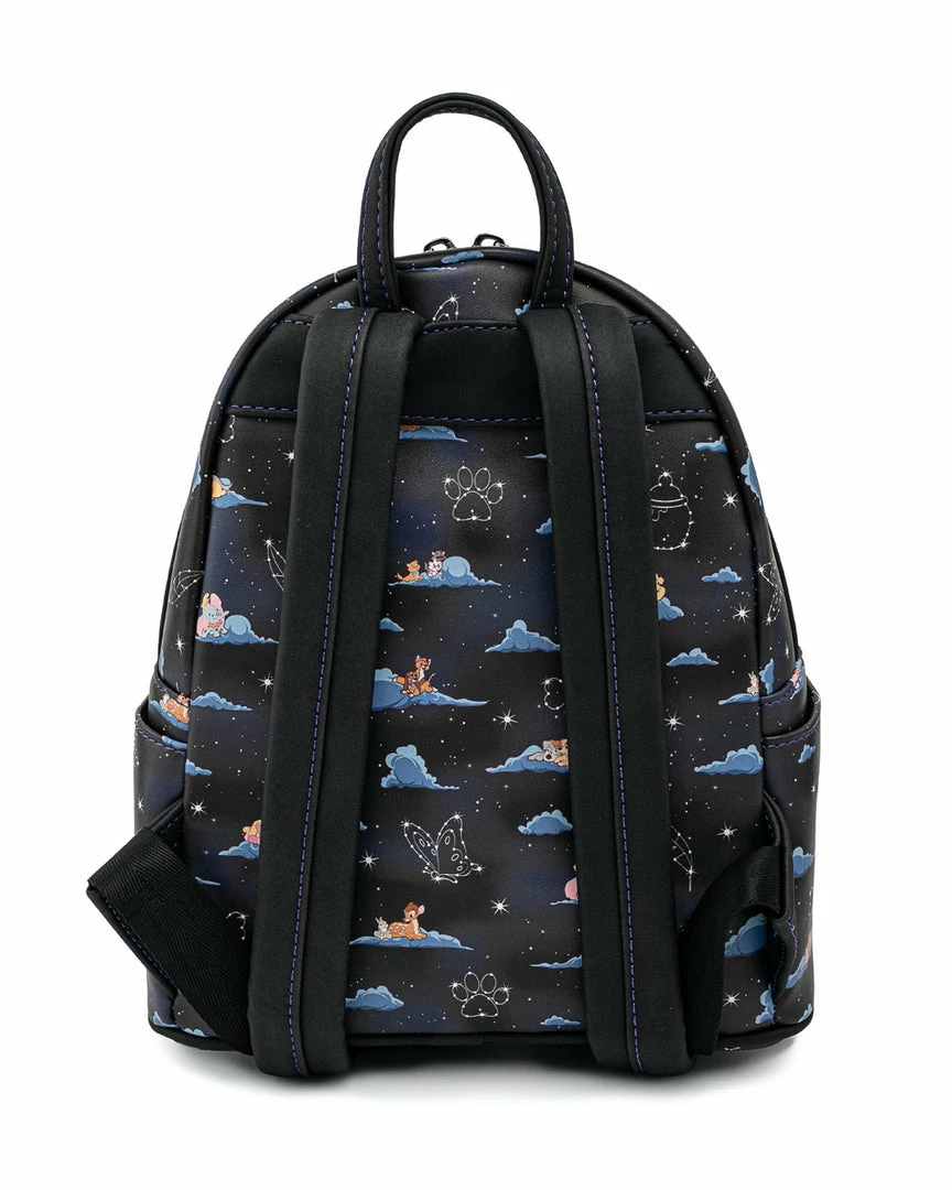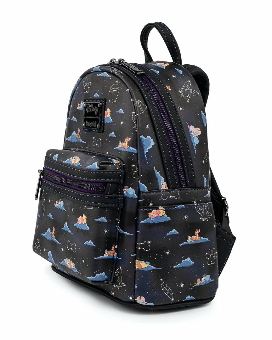 Itβs a dream come true with the Loungefly Disney Classic Clouds Mini Backpack. Among the night sky and the fluffy clouds are some of Disneyβs classic characters from various movies looking at constellations. This dreamy accessory is a great complement to a Disney outfit.
