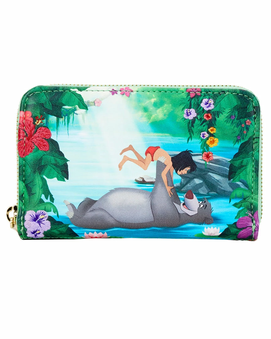 Troubles just drift away when Baloo is at Mowgli’s side, reminding him of the “Bare Necessities.” Add this memorable scene to your Disney collection with The Jungle Book Bare Necessities Zip Around Wallet. On the front of the wallet, the jungle bursts to life with blooming flowers, lush trees, and warm sunlight as Baloo floats on his back down tranquil blue waters. As he floats, he lifts Mowgli playfully up into the air. On the back, Kaa makes an appearance, nestled in the branches of trees. It’s the perfect accessory for any Disney occasion.