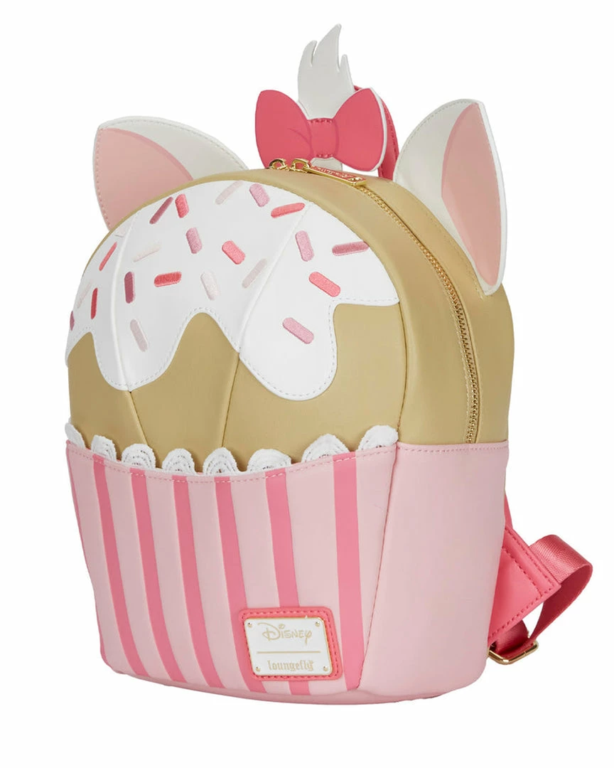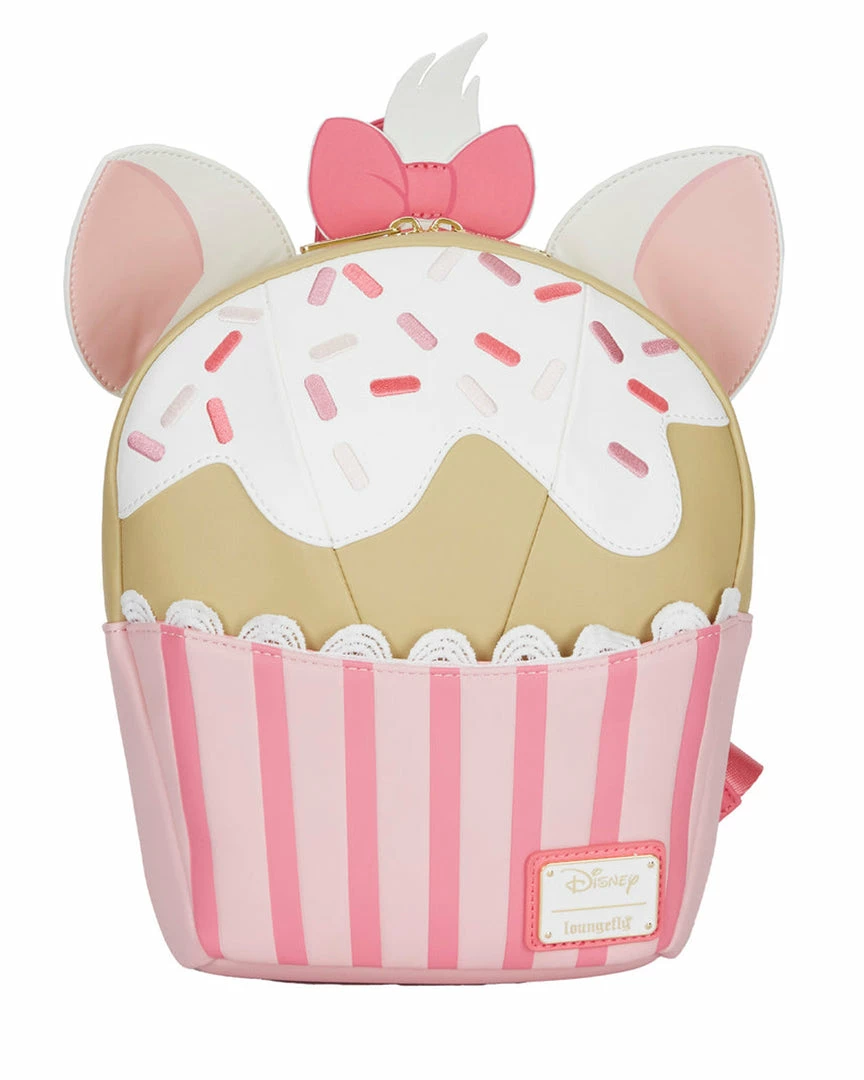 Adorable Marie has stumbled upon a tempting cupcake, and she might take a delightful tumble. Bring her with you on your next adventures with this Loungefly Marie Sprinkle Cupcake Cosplay Mini Backpack.