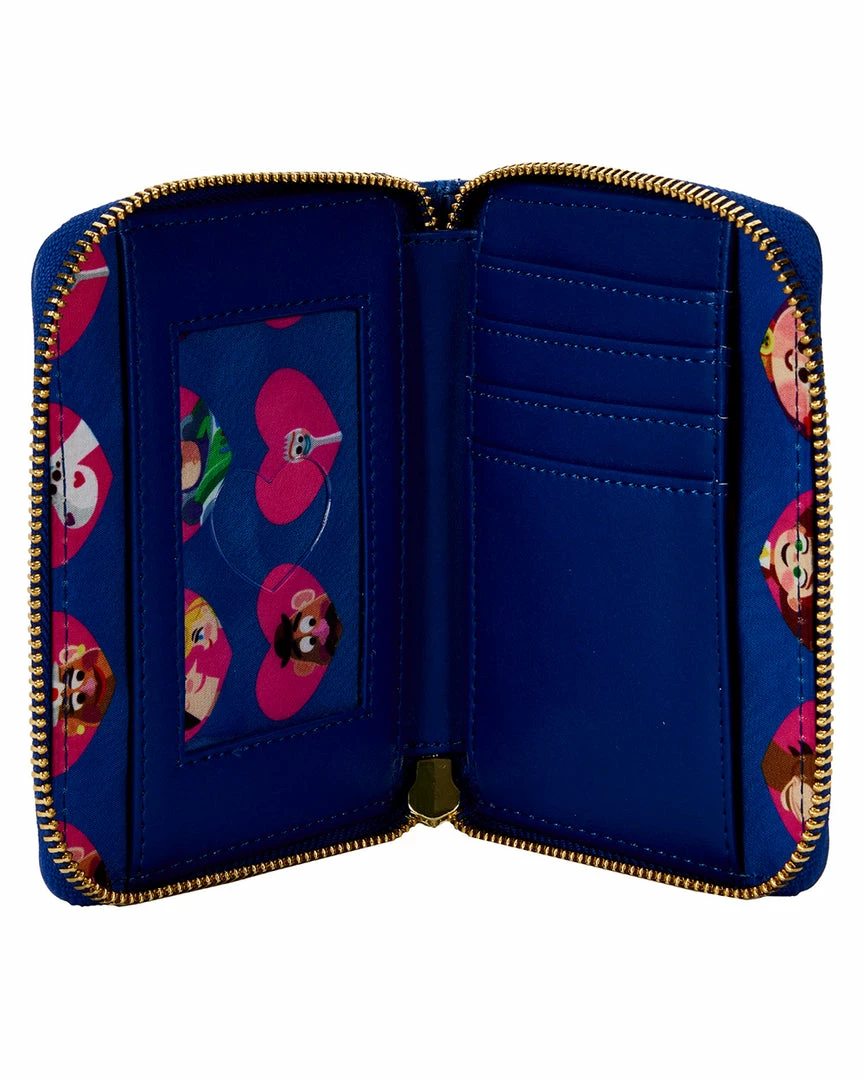 The wheels of fate are spinning in the amusement park, but Woody and Bo Peep manage to find each other. Celebrate this romantic encounter with the Toy Story Ferris Wheel Movie Moment Zip Around Wallet. On the front, Woody and Bo Peep gaze into each other’s eyes as they stand before the Ferris wheel, which sparkles at night. On the back, Slinky Dog, Hamm, Jessie, Buzz Lightyear, Rex, and Bullseye join Woody and Bo Peep in another appearance.
