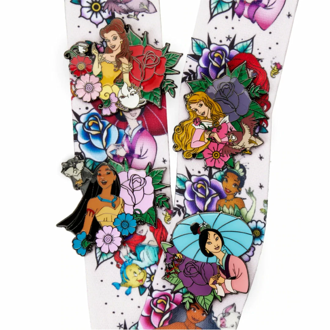 Loungefly – Disney Princess Floral Tattoo Lanyard with 4 Pin Set