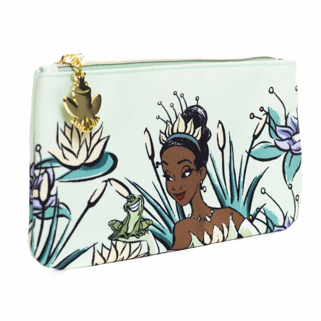 - You’re going to love this cute nylon pouch featuring Disney Princess Princess and the Frog Tiana. This Loungefly multi-use pouch features include sturdy gold toned hardware, solid matching lining, and is made of sturdy nylon material. Perfect for organizing all your small accessories; charging cables, pens, hand sanitizer, and more!