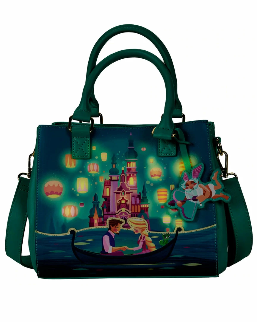 A sky filled with lanterns lights the way as Rapunzel escapes from the tower to search for the truth. Join Rapunzel in her quest by adding this Loungefly Tangled Rapunzel Castle Glow in the Dark Crossbody Bag to your collection.