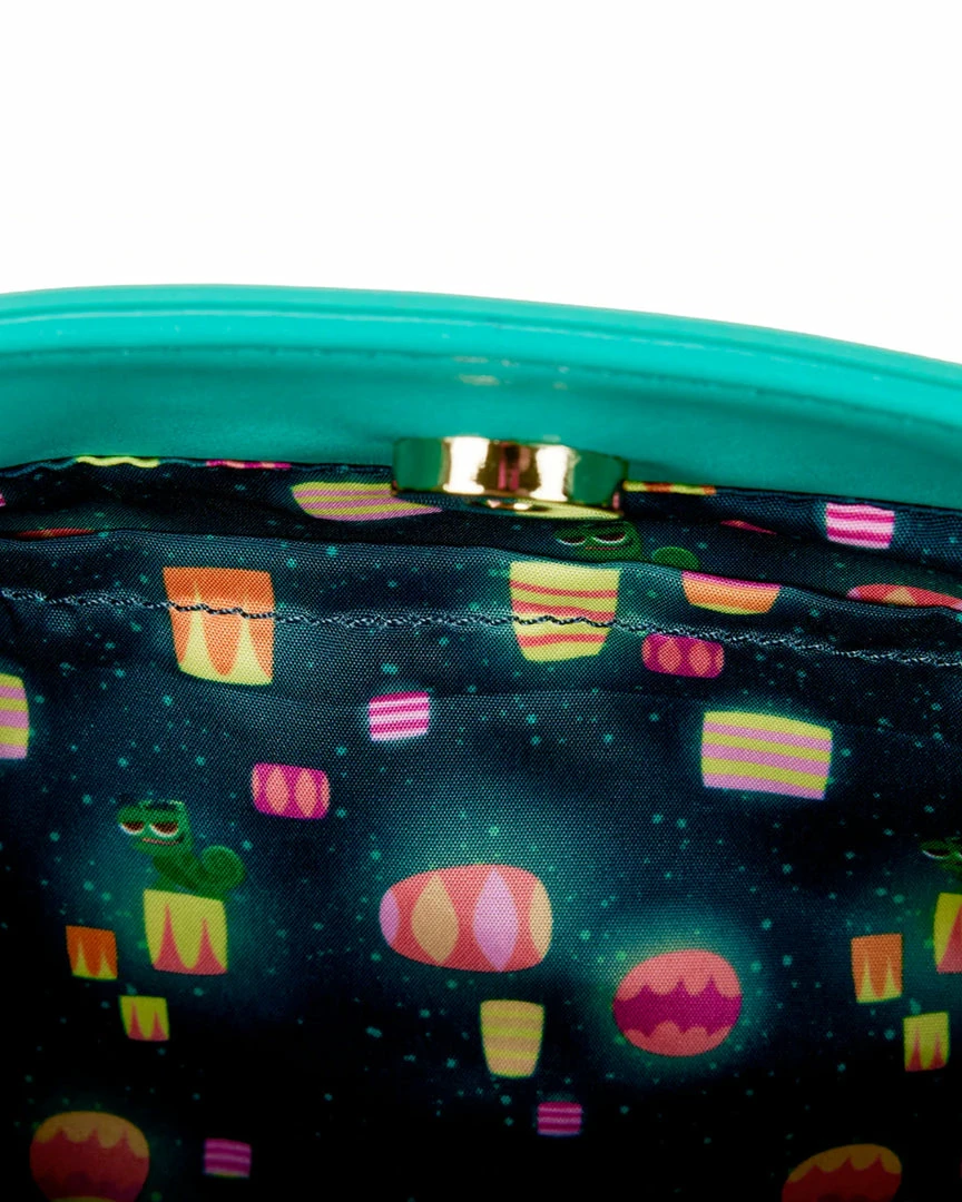 Note the coordinating lining, which carries a motif of lanterns in the night sky. This bag is a charming accessory for any Disney outfit. Crossbody bag features include the following details: vegan leather (polyurethane), adjustable shoulder straps, gold-colored metal hardware, and applique and printed work.