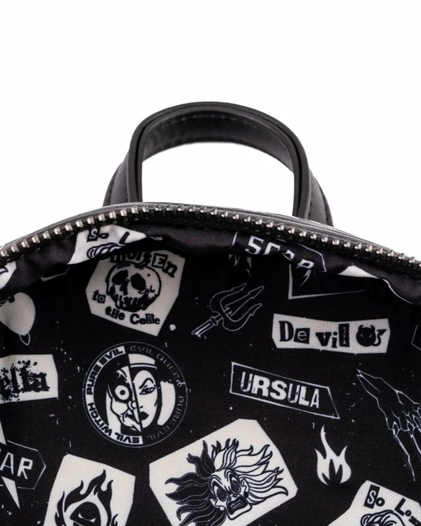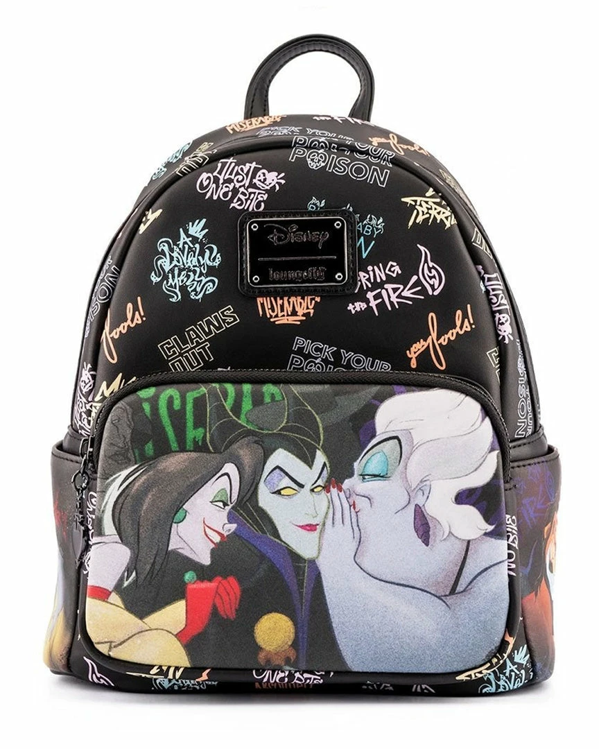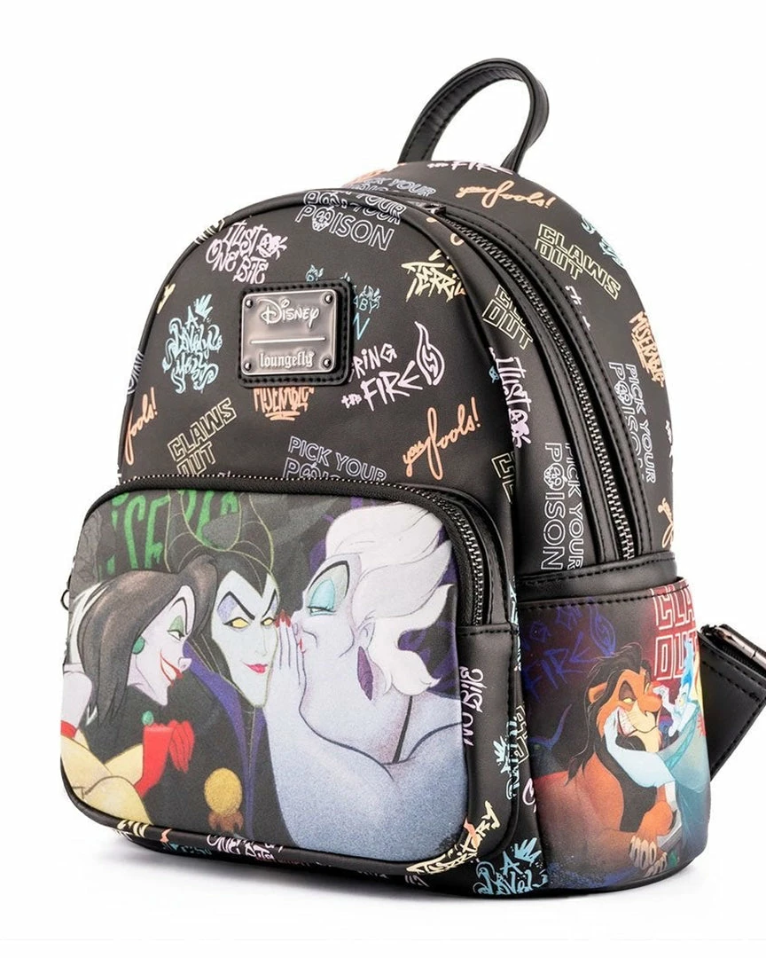 Dare to drop in on the Disney Villains Club. What secrets could the likes of Maleficent, Ursula, and Cruella de Vil be keeping? As a fly on the wall, you can listen in, while your possessions remain safe inside the Loungefly Villains Club Mini Backpack.