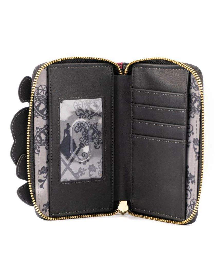 The key to a villainous outfit is the accessories. The Loungefly Disney Cinderella Evil Stepmother and Stepsisters Villains Scene Zip Around Wallet is here to rule the roost. Cinderella’s stepmother and stepsisters wear unapproving looks, while on the back you’ll find Jaq and Gus carrying the key that may set Cinderella free.