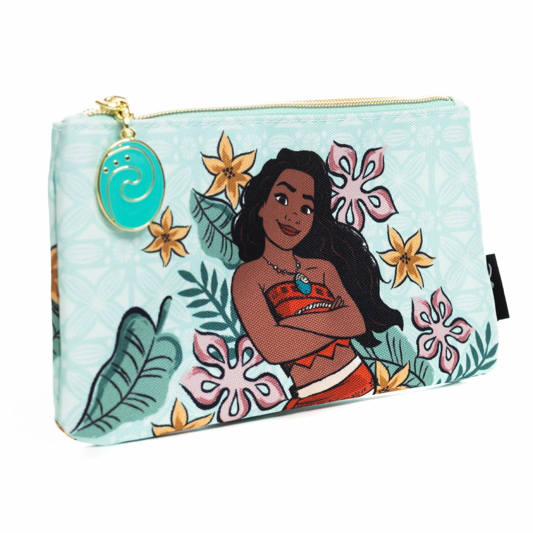 - You’re going to love this cute nylon pouch featuring Disney Princess Moana. This Loungefly multi-use pouch features include sturdy gold toned hardware, solid matching lining, and is made of sturdy nylon material. Perfect for organizing all your small accessories; charging cables, pens, hand sanitizer, and more!