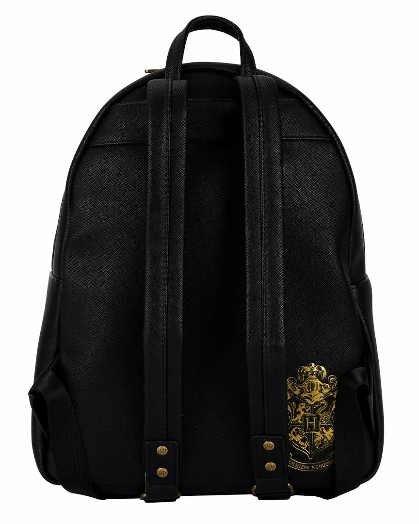 Wave a wand and conjure up your favorite scenes from the <i>Harry Potter</i> film series. Join Harry on his adventures with this Harry Potter Trilogy Triple Pocket Mini Backpack. Each pocket is dedicated to a Harry Pottermovie, beginning with Harry Potter and the Sorcerer’s Stone. On the back, the Hogwarts School emblem appears in gold foil detail, with the motto: “Draco Dormiens Nunquam Titillandus” (Never Tickle a Sleeping Dragon.)