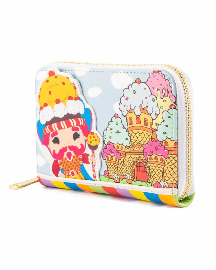 Keep sweet treats packed in this neat Funko Pop! by Loungefly Candy Land Zip Around Wallet. King Kandy is outside of his castle, while on the back of the wallet Mr. Mint and Plumpy pop into view. This wallet has 4 slots for holding cards, as well as a clear window slot for holding your ID. This design is sure to delight any who encounter it!