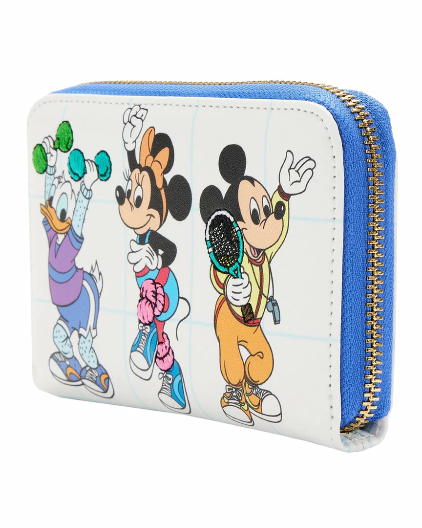 Come on everybody, itās time to get on your feet! The Loungefly Disney Mousercise⢠Zip Around Wallet is here to get you up and moving. Dressed in retro athletic wear, this 1980s-inspired mini backpack features Mickey Mouse, Donald Duck, and Minnie Mouse as they perform their favorite forms of physical activity. On the front, Donald lifts some dumbbells, Minnie performs aerobics, and Mickey holds a tennis racket. On the back, the Mousercise logo is displayed against a grid background. With four slots for holding cards and a clear slot to hold your ID, this wallet has plenty of room to keep your gear safe wherever you go. This nostalgic accessory is perfect for fans who are looking for a fun way to show off one of their favorite Disney memories.