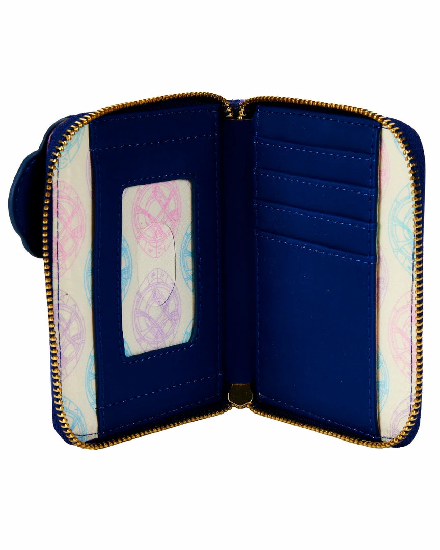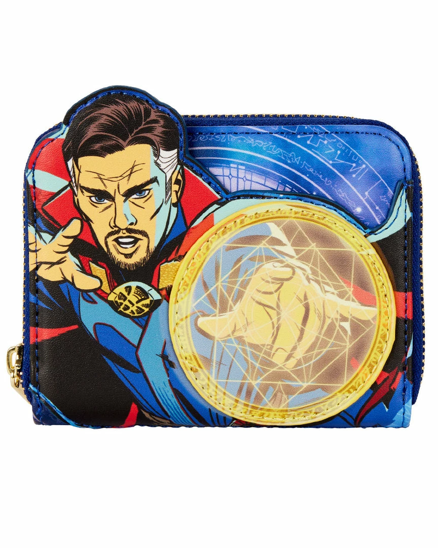 Stop the hands of time to capture thisĀ Doctor Strange in the Multiverse of MadnessĀ Glow in the DarkĀ Zip Around Wallet. On the front of this zip around wallet, Doctor StrangeĀ casts a golden sign that glows green in the dark.Ā On the back, the Eye of AgamottoĀ appears in gold, floating through space and time.Ā When the lights go out, it glows green in the dark as well.