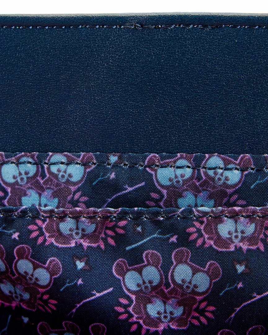 The Loungefly Brave Princess Merida Castle Crossbody Bag Crossbody Bag is made of vegan leather (polyurethane). Bag has a chain and adjustable faux leather shoulder strap (detachable). Additional features include the following details: sturdy metal hardware, faux leather charm, foil, applique, and printed details. Notice the touching reunion scene with Merida’s mother in bear-form printed on the inside of the purse flap, along with the coordinating inside lining.