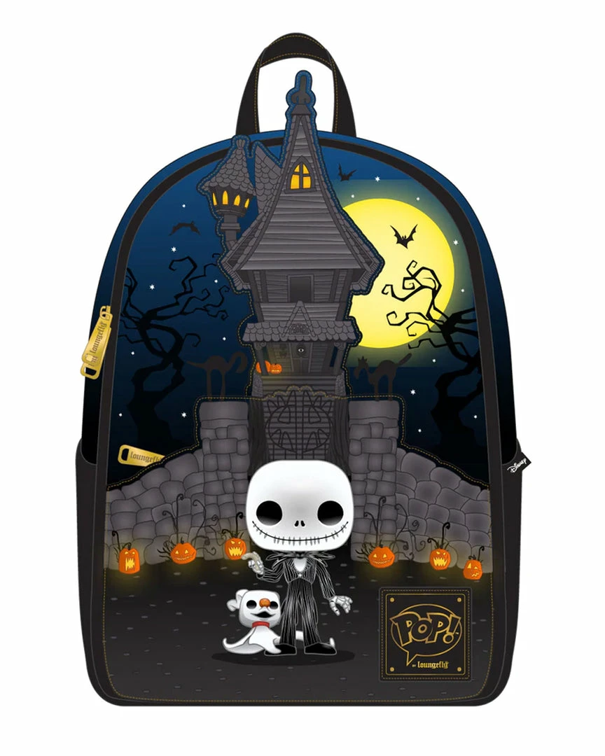 Prepare for a scare! Funko Pop! by Loungefly Jack Skellington Mini BackpackĀ brings some frightful fun to every day. On the front, Jack Skellington and ZeroĀ the ghost dogĀ fromĀ The Nightmare Before ChristmasĀ appear in Funko Pop! form outside the gates of Jackās house. Opening the gate will grant you access to a hidden pocket perfect for storing your tricks and treats. Turn the bag around to find Pop! Jack Skellington and Zero striking a terrifying pose. Embrace your spooky side with a festive accessory that is sure to bring thrills and chills throughout the year.